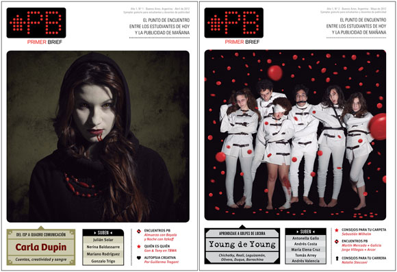 (ARGENTINA) – En los primeros cinco días de este mes más de 2.800 estudiantes de publicidad de la Capital Federal y el Gran Buenos Aires recibieron gratis su ejemplar de PRIMER BRIEF. Esta vez, los inmortalizados en la excelente foto de tapa de Andy Cherniavsky fueron los seis estudiantes que el 14 de mayo terminaron su pasantía de seis meses en el programa Young de Young: Alba Barrachina y Ana Duque (de Underground), Julieta Chichotky y Cynthia Leguizamón (de la Escuelita) y David Olivera y Patricio Reali (del ISP). En la nota, el artículo editorial de esta edición.