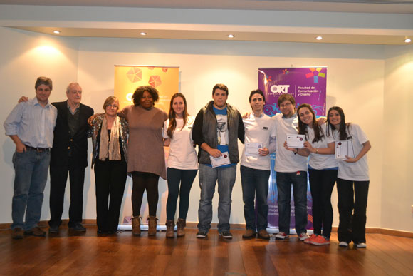 Foto del equipo ganador: de izquierda a derecha, Marcelo Alfonzo (rector de Universia Uruguay), Miguel Olivencia (director de Comunicación Publicitaria), Monserrat Ramos (coordinadora académica de la licenciatura en Publicidad), Alicia Esquivel (doctora, integrante de la Comisión Honoraria contra el Racismo, la Xenofobia y Toda otra Forma de Discriminación, Ministerio de Educación y Cultura del Uruguay) y el equipo ganador, integrado por Franca Idiarte, Alex Zavala, Martín Biurrun, Massimiliano di Murro (líder), Noelia Matkovich y Florencia Fabini. (Fotos: Facebook Evento)