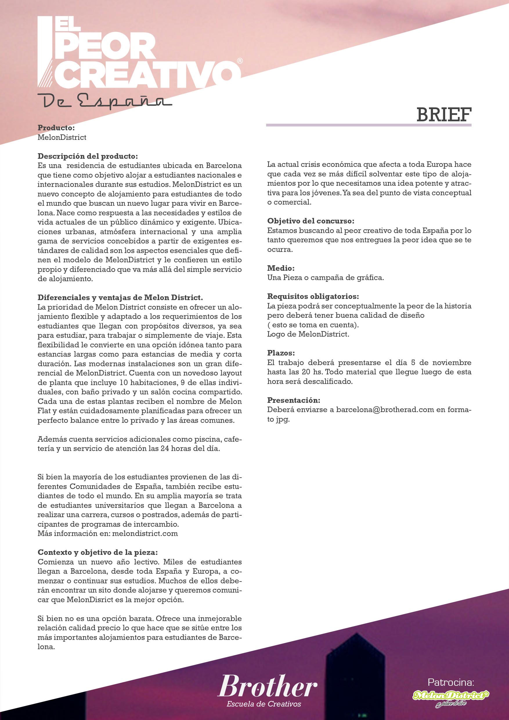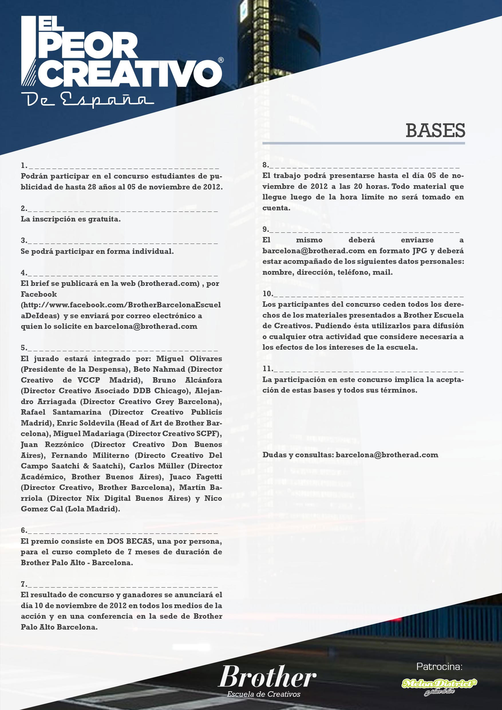 Quedó dicho más arriba: el concurso «Estamos buscando el peor creativo de España» no es otra cosa que el lanzamiento de la primera sede europea de Brother Escuela de Creativos, después de que ya vengan funcionando desde hace un tiempo las de Buenos Aires, Santiago de Chile, Bogotá, Santo Domingo, Montevideo, México y Caracas.