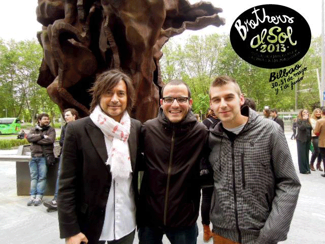 Gerard y Joan en tres momentos del evento realizado en Bilbao: primero, con Antonio Montero, uno de los creativos referentes de la publicidad española, antes de la entrega de premios en la que se impusieron; después, en el escenario, mostrando orgullosos sus premios; finalmente, al cierre del festival, a punto de emprender la vuelta a Cataluña.