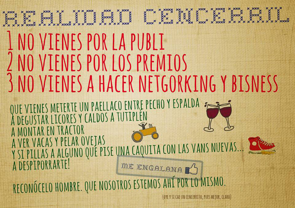 Si después de todas estas recomendaciones te preguntás por qué alguien querría participar en este evento, podés leer el afiche promocional que explica esta cuestión. La herramienta de escribir en inglés por fonética (un recurso muy utilizado en publicidad) se encuentra en todas las piezas de El Cencerro.