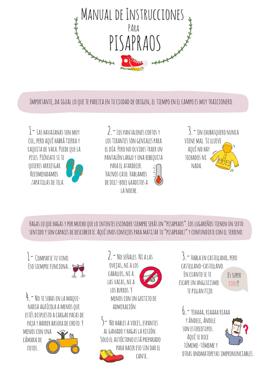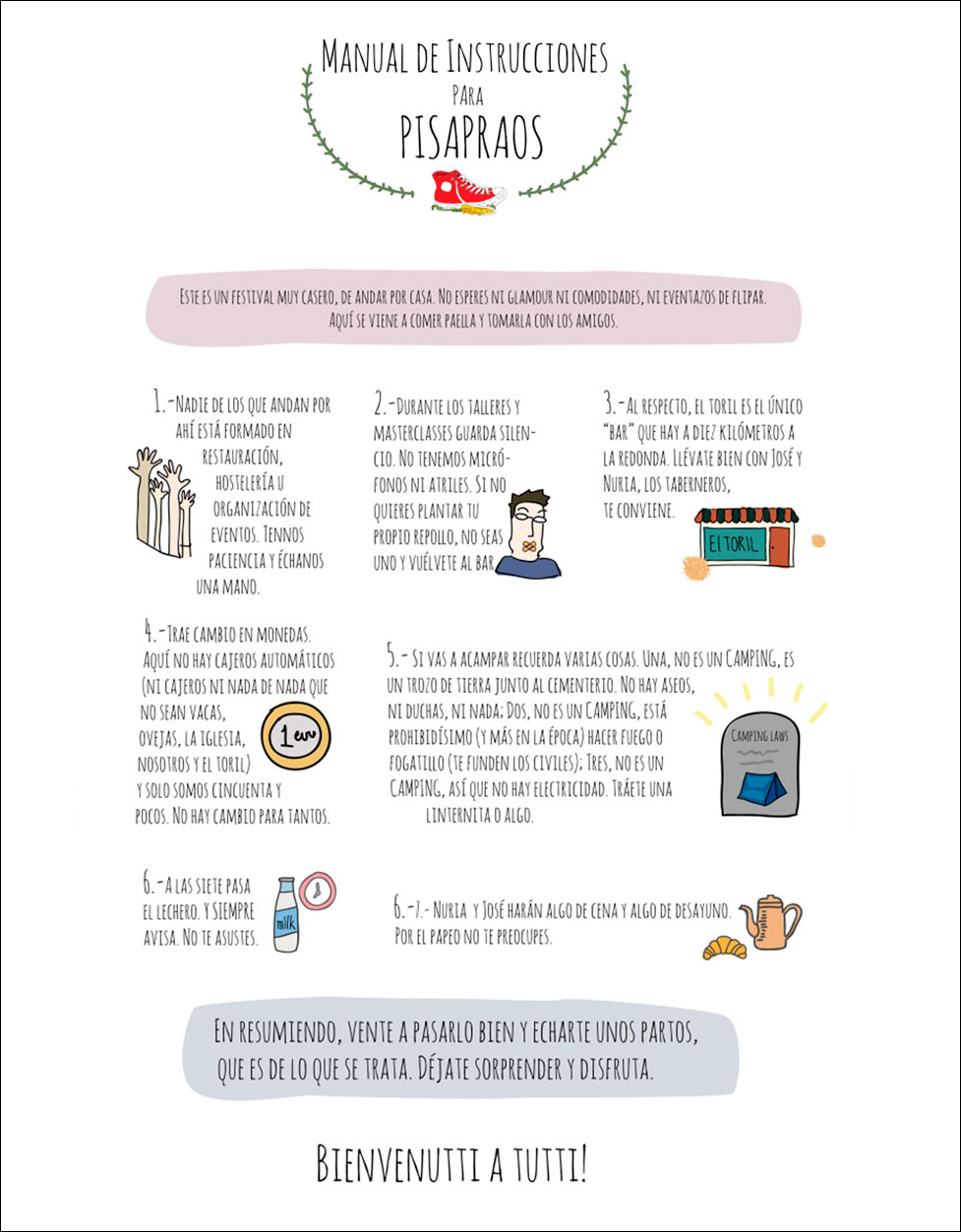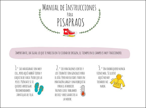 Todas las piezas de promoción del evento mantienen el tono rural que las hace tan especiales y divertidas. Ninguna de las herramientas de comunicación que utiliza la gente de El Cencerro escapa a este tono. Para continuar con las recomendaciones (sobre todo para aquellos intrépidos que decidan irse de campamento), la segunda parte del manual para pisapraos hace un foco de recomendaciones sobre este aspecto.