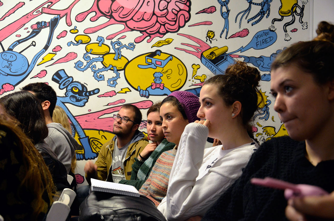 Casi al final quedó tiempo para alguna que otra pregunta. Un estudiante preguntó algo que nos preocupa a todos los estudiantes: ¿cómo saber cuándo una idea es, realmente, muy buena? La respuesta de Rial fue simple y brillante. «Te das cuenta por el estómago, es todo una cuestión estomacal. Si una idea es muy buena tu estómago te avisa». Tremendo.