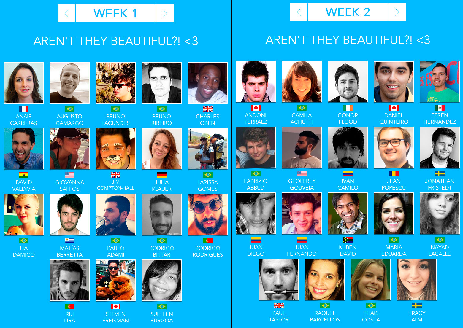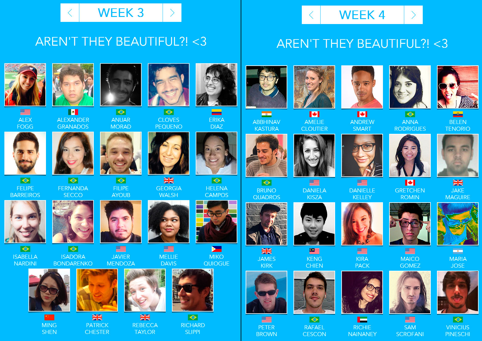 Cada semana, los estudiantes seleccionados recibieron sesiones de información para resolver problemas de negocios reales y conferencias y talleres en el ámbito de la innovación, el arte, el diseño, el urbanismo, la tecnología, la fotografía y la televisión, e interactuaron con referentes locales como Didi Wagner (presentadora de televisión brasileña), Vince Vader (profesor de creación digital de la Escuela Superior de Publicidad y Marketing y autor de más de 30 juegos digitales), Rapha Vasconcellos (director de Soluciones Creativas de LATAM) y Texto Canisso (bajista de la banda brasileña Raimundos).