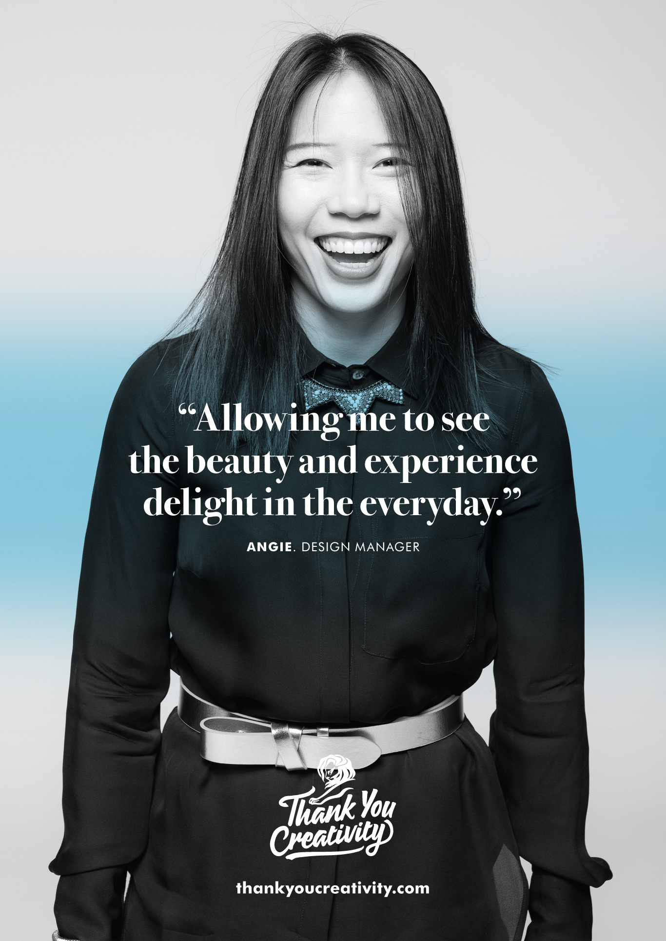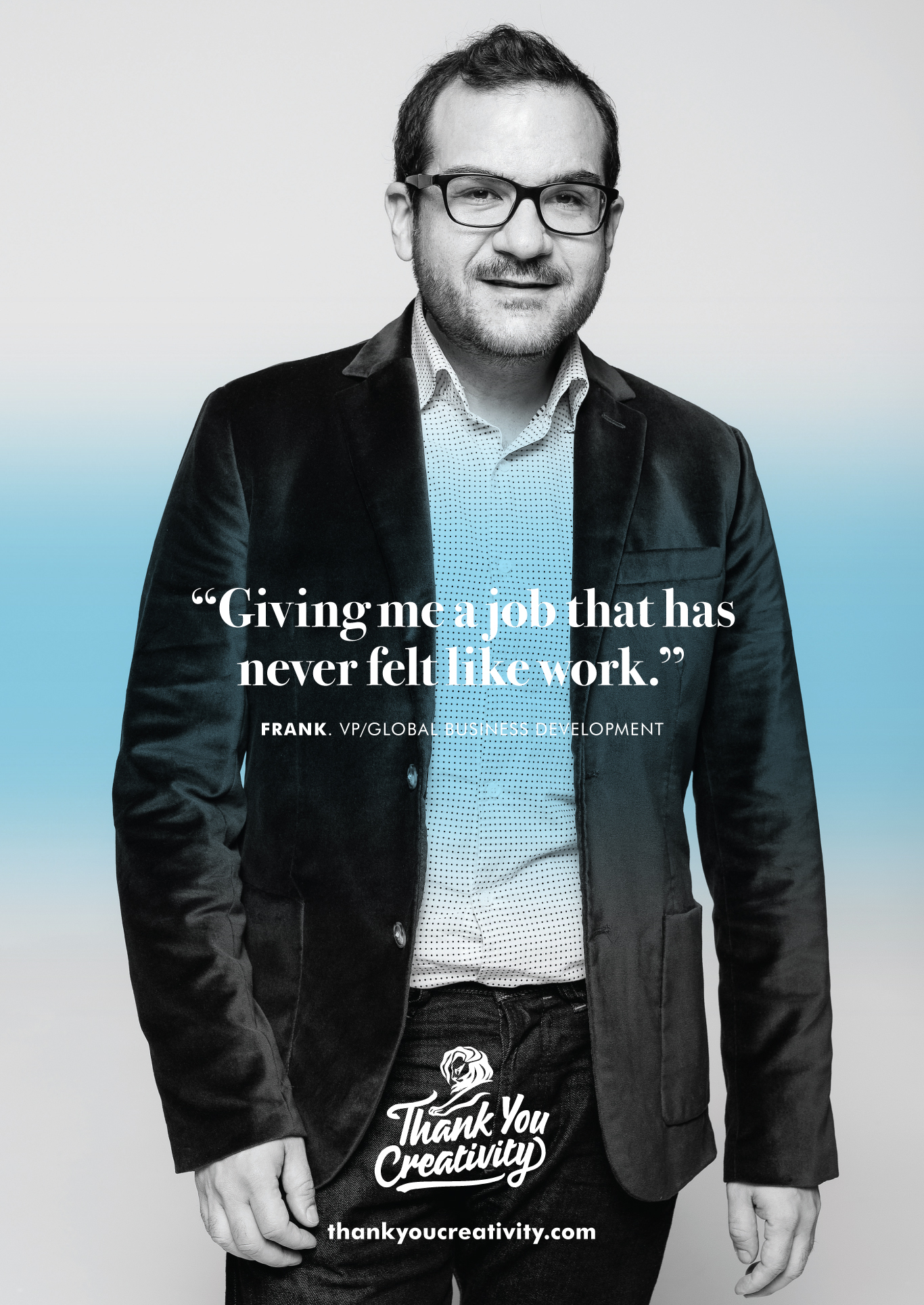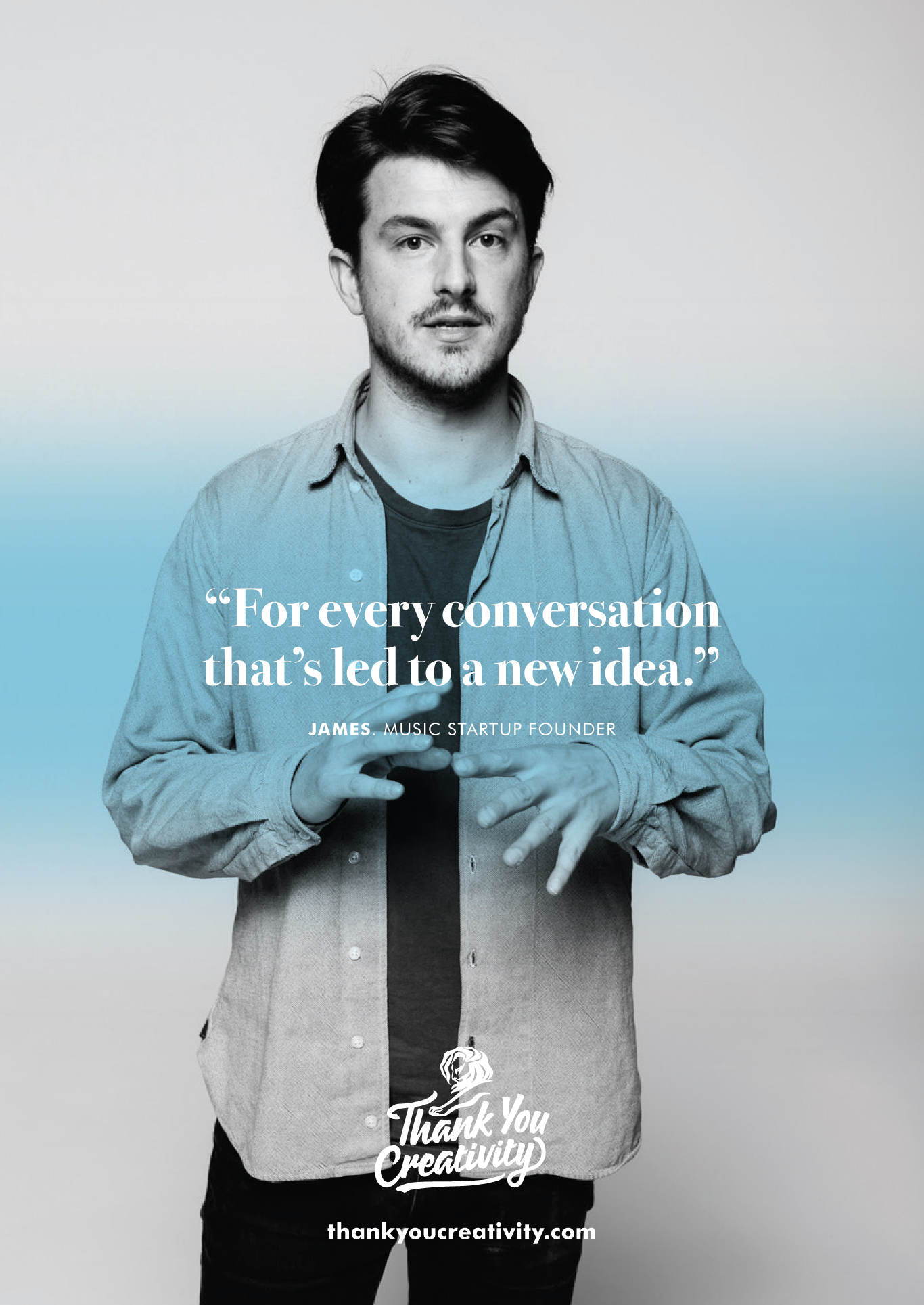 Compuesta (por ahora) por una serie de posters donde varios profesionales de la comunicación relatan por qué le agradecen a la creatividad, y varios comerciales que se irán develando en el sitio thankyoucreativity.com hasta al 18 de junio, cuando inicie la próxima edición del festival con sus tradicionales premios al mejor trabajo publicitario del mundo.