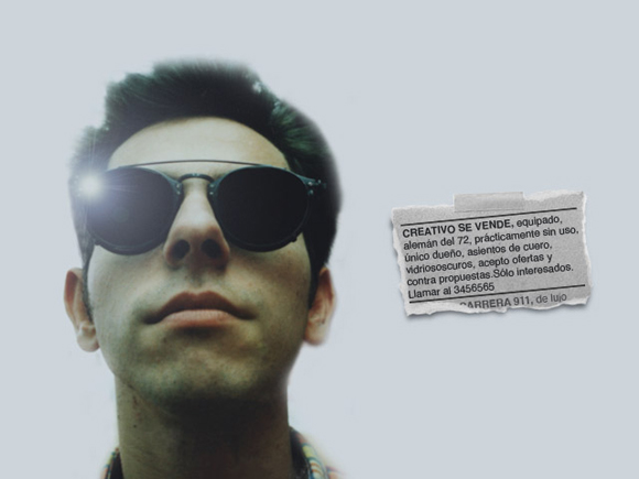 «Luego preparé otro arte en el que aparecía con lentes oscuros y decía así (ver arriba): Creativo se vende, equipado, alemán del 72, prácticamente sin uso, único dueño, asientos de cuero y vidrios oscuros, acepto ofertas y contra propuestas. Sólo interesados, etc.