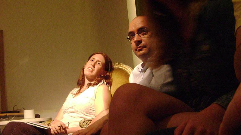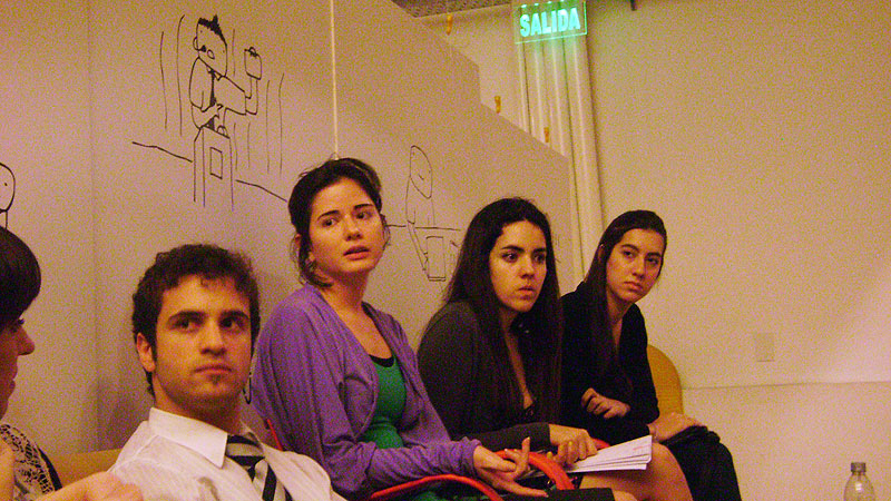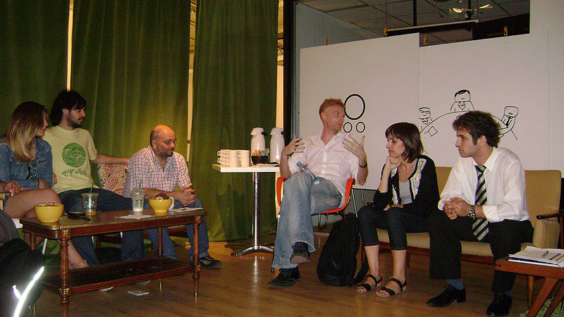 En primer plano, Dan Peisajovich e Yvonne Gindre, los argentinos que en septiembre de 2005 crearon Complot Escuela de Creativos en Barcelona y que anoche presentaron por primera vez su institución en Buenos Aires. (Fotos: Ezequiel Banchero y Liliana Orjuela, PB)